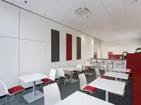 Die Wandflächen bestehen aus Trägerplatten (FPO 19 mm B2/E1) mit Melamin oder hochwertigen Messerfurnieren. UV-Lackierungen in unterschiedlichen Glanzgraden sind ebenso möglich wie textile oder lackierte Sonderoberflächen. Alle Komponenten sind brandschutzkonform ausgeführt.