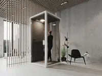Dank integriertem Belüftungssystem, optionaler Klimatisierung und hochwertiger Schalldämmung entsteht ein komfortabler Raum für eine Person. Er ist kompakt, leicht zu platzieren und in verschiedenen Farbvarianten erhältlich.