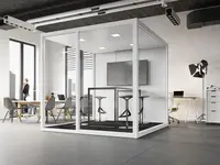 Der Cube ist ein autarkes, freistehendes Raumsystem, das unabhängig von Decke und Wänden platziert werden kann. Es bietet hohe Schalldämmung, integrierte Lüftung und flexible Elektrifizierung – ideal für Rückzugsräume, Besprechungen oder konzentriertes Arbeiten im Open Space.