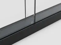 Die Glasflächen werden stumpf gestossen, ohne vertikale Stützenprofile. Eine schmale Trockendichtung sorgt für ein durchgehendes, transparentes Erscheinungsbild mit klarer Linienführung.