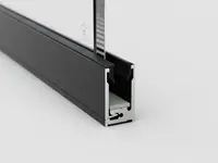 Die Glasflächen werden mit schmalen Aluminiumprofilen montiert. Diese sind eloxiert oder beschichtet erhältlich und ermöglichen eine klare Linienführung mit schmalen Fugen.