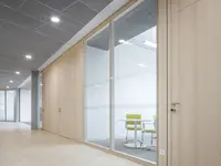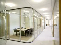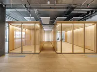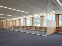 Ein versetzbares Rahmenwandsystem aus Holzwerkstoffen mit doppelt verglasten Elementen. Es wird vormontiert geliefert und vor Ort verbunden – für effiziente und hochwertige Raumlösungen.