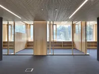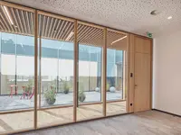 Die Holz-Glas-Doppelverglasung überzeugt durch hohe Schallschutzwerte, flexible Systemintegration und natürlich warme Oberflächen – perfekt für anspruchsvolle Raumkonzepte.