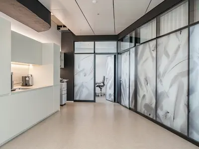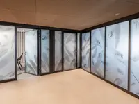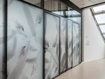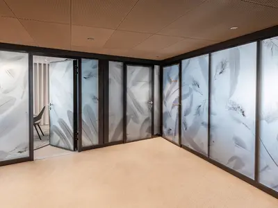 Flexible Glastrennwände mit Folie für individuellen Sichtschutz.