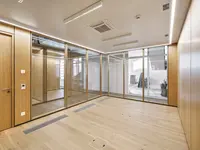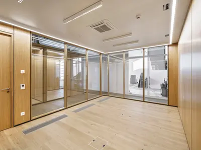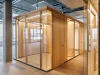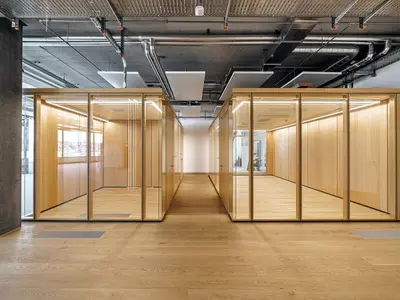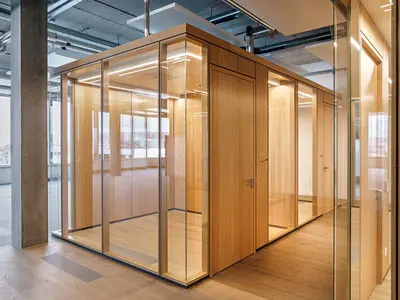 Glastrennwände und Echtholz: Ein harmonisches Duo für moderne Büroräume.