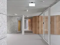 Das Trennwandsystem mit Zweischeiben-Verglasung wird als rahmenlose Ganzglaskonstruktion ohne vertikale Profile ausgeführt. Die Verglasung wird von Boden- und Deckenprofilen gehalten, fügt sich flächenbündig ein und erfüllt höchste Anforderungen an Transparenz und Schallschutz.